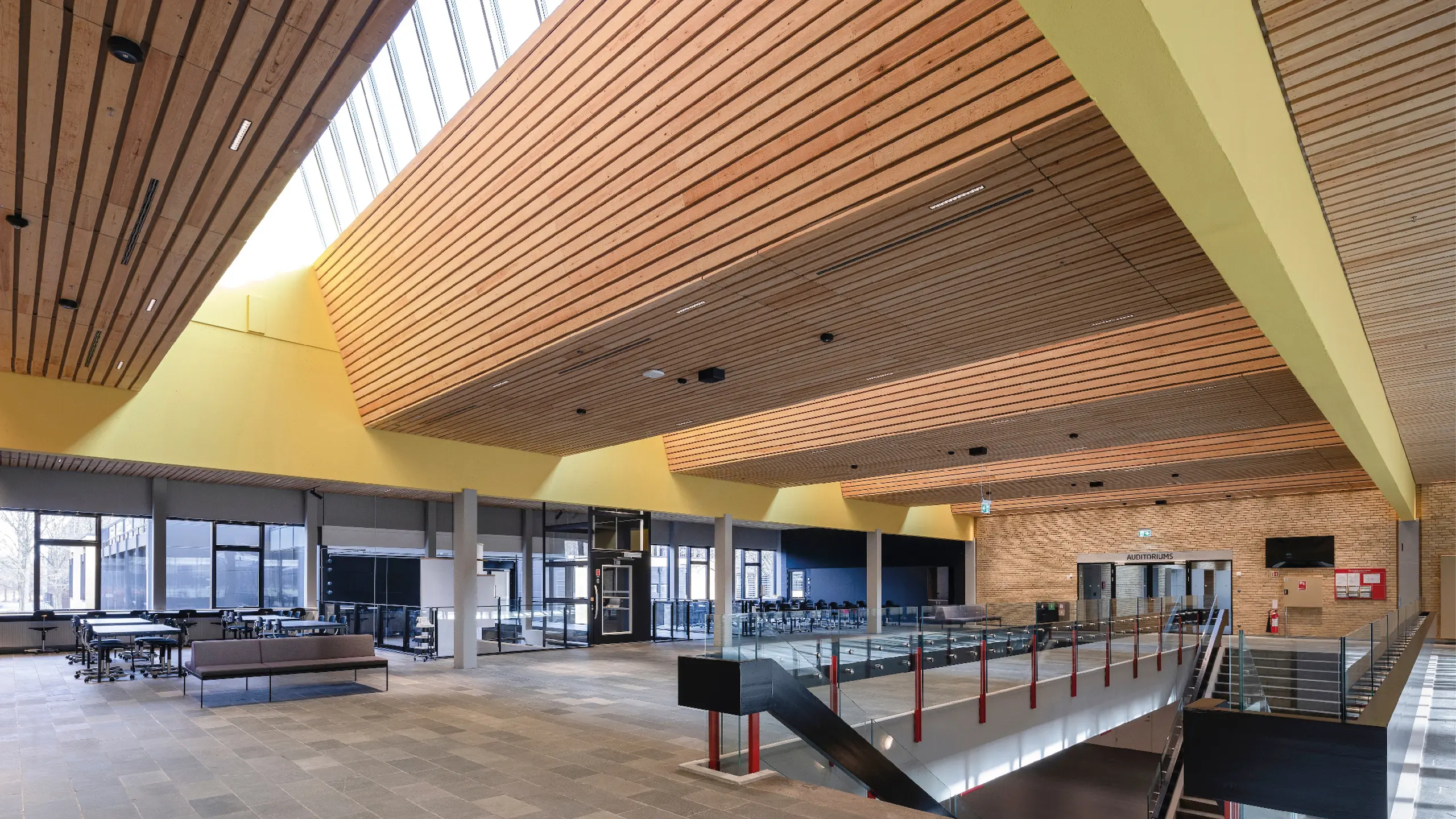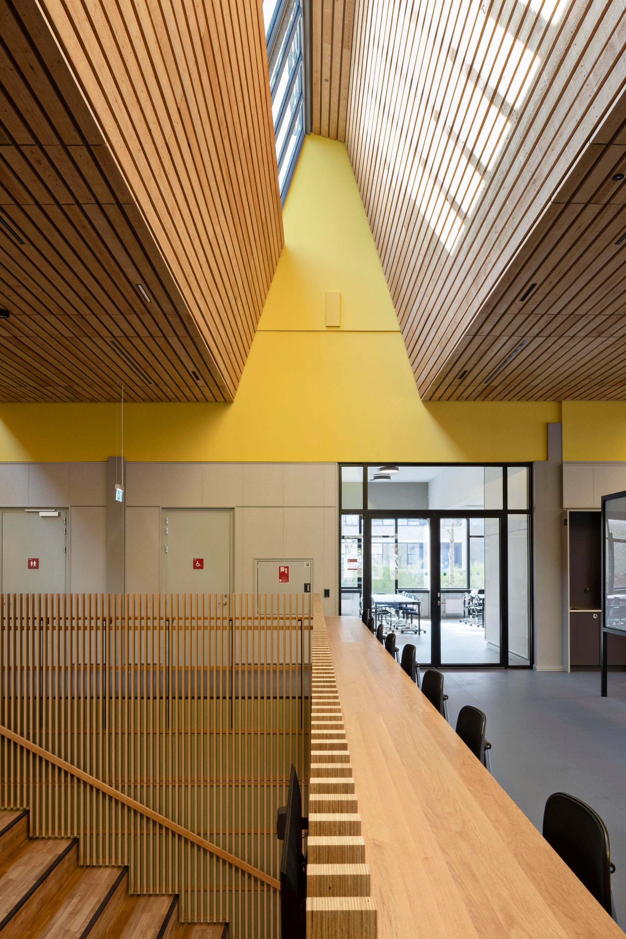 Et væsentligt aspekt af transformationen har været forbedringen af dagslysforholdene. For at åbne den tidligere noget mørke bygning op er vinduespartierne blevet udvidet, og der er tilføjet ovenlysvinduer flere steder. Opholdsarealerne er blevet flyttet til facadens mange vinduespartier, hvilket skaber et mere livligt og forbundet miljø, hvor de studerende og ansatte kan orientere sig på tværs af lokaler og etager samt være i kontakt med landskabet udenfor.