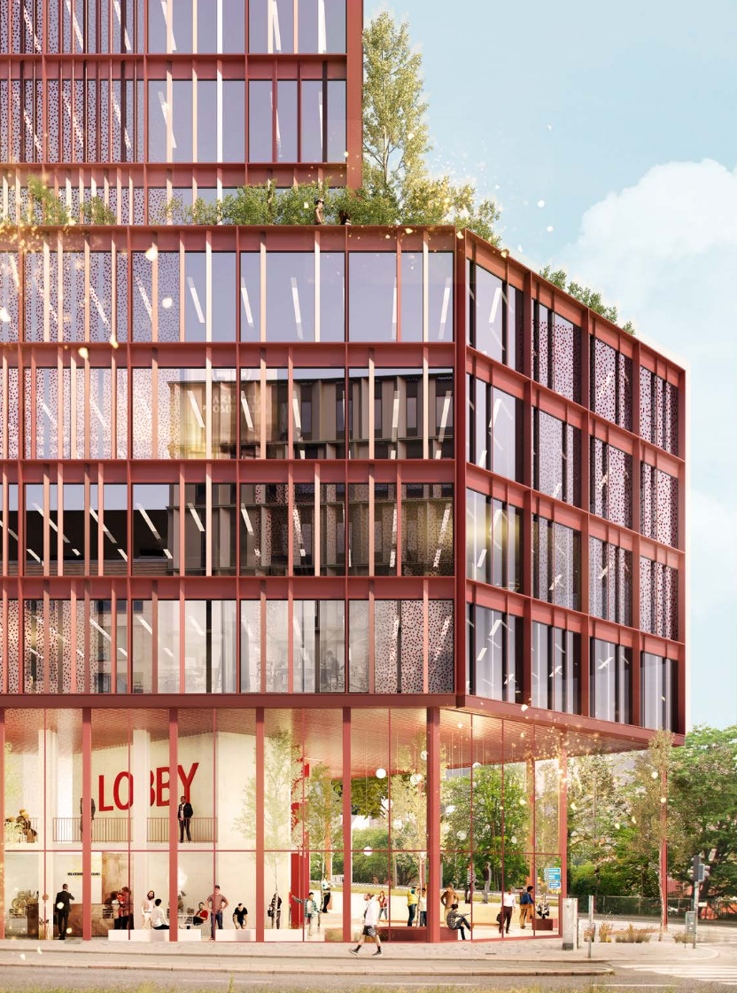 Bygningen kommer til at få et nyt facadeudtryk, der åbner sig mod omgivelserne, og en indbydende lobby i stueetagen forbinder huset med byen.