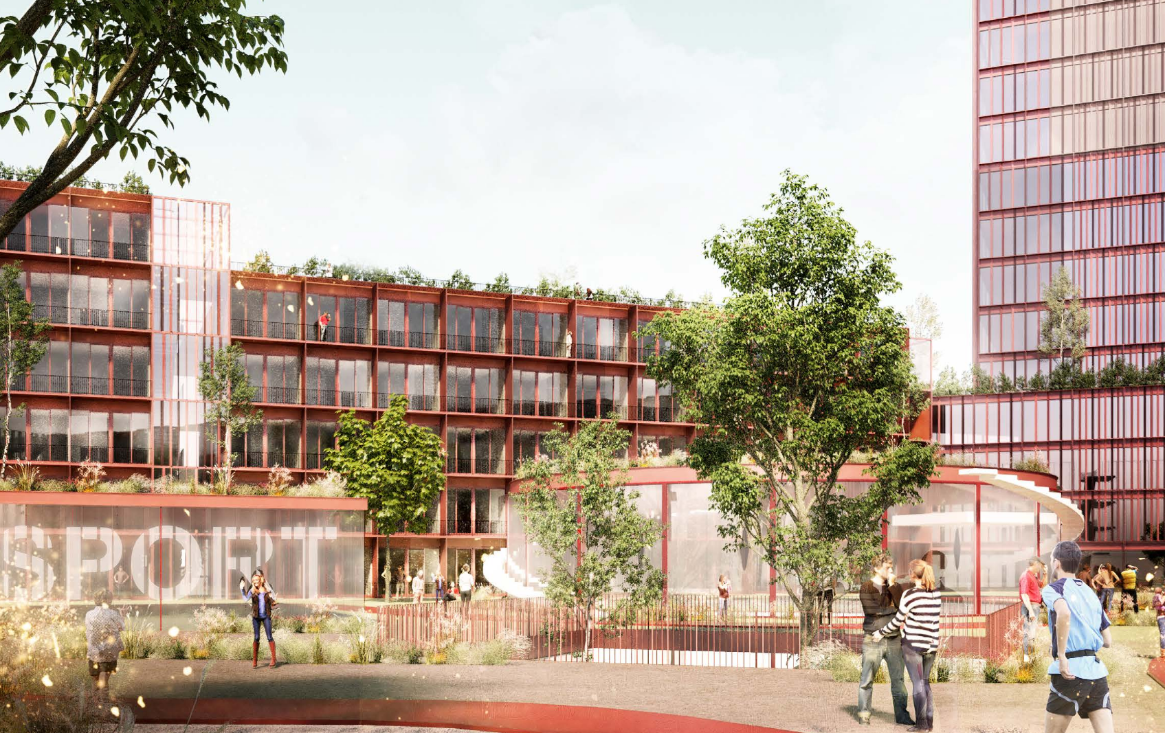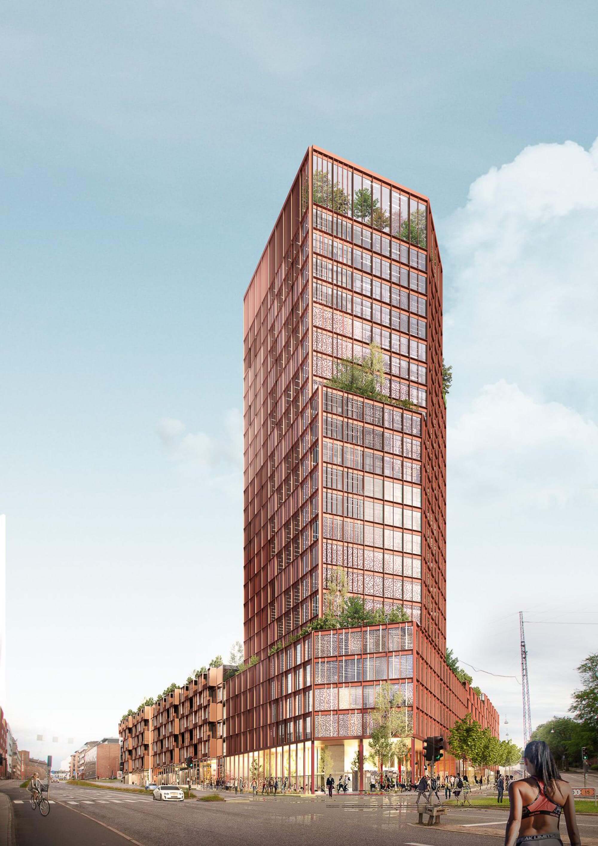 Således kommer bygningen til at bevæge sig fra at være en tung, sort monolit til et lyst og åbent højhus med kompakte boliger, grønne tage og fællesområder, hvor sport, fællesskab og sundhed er i centrum.