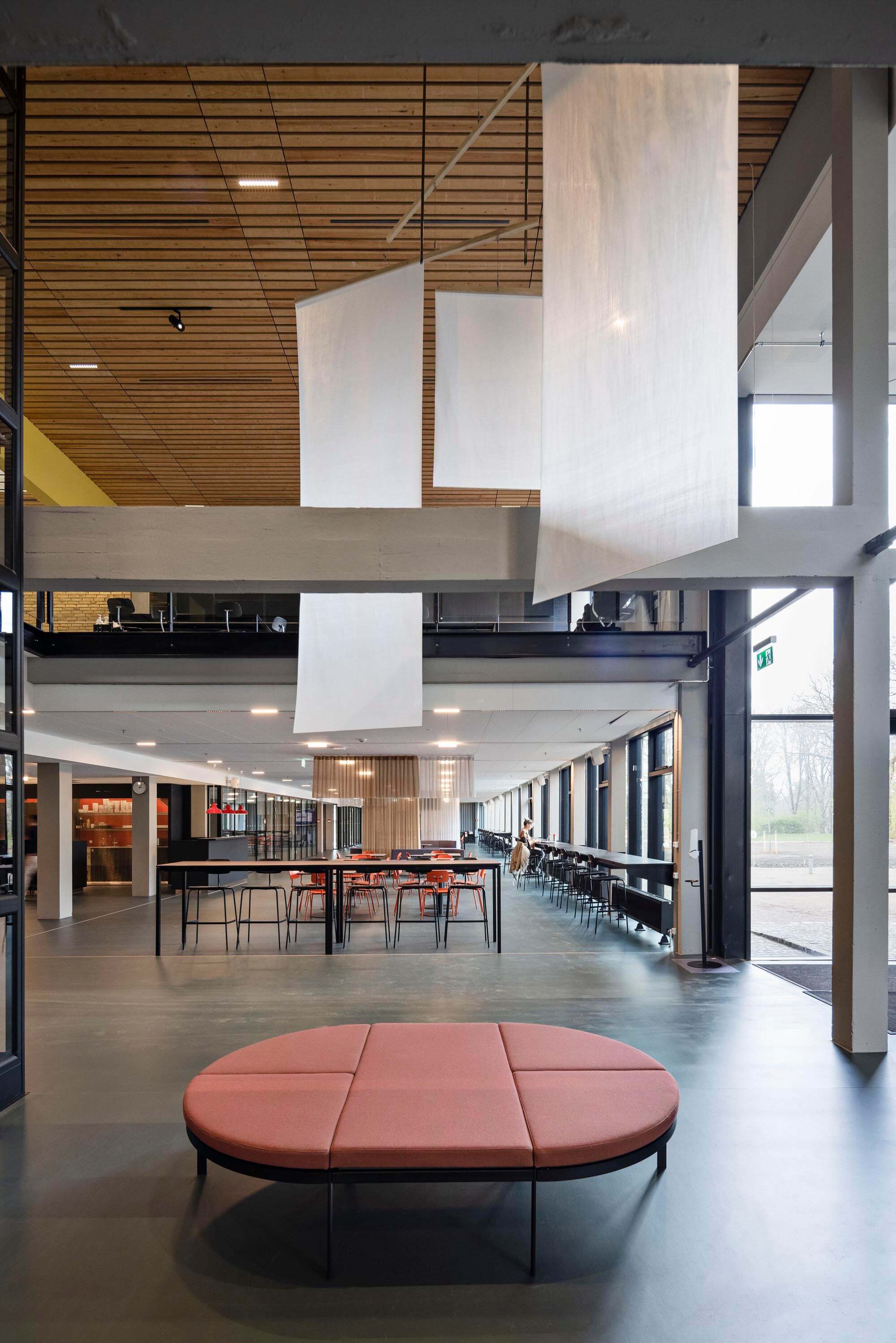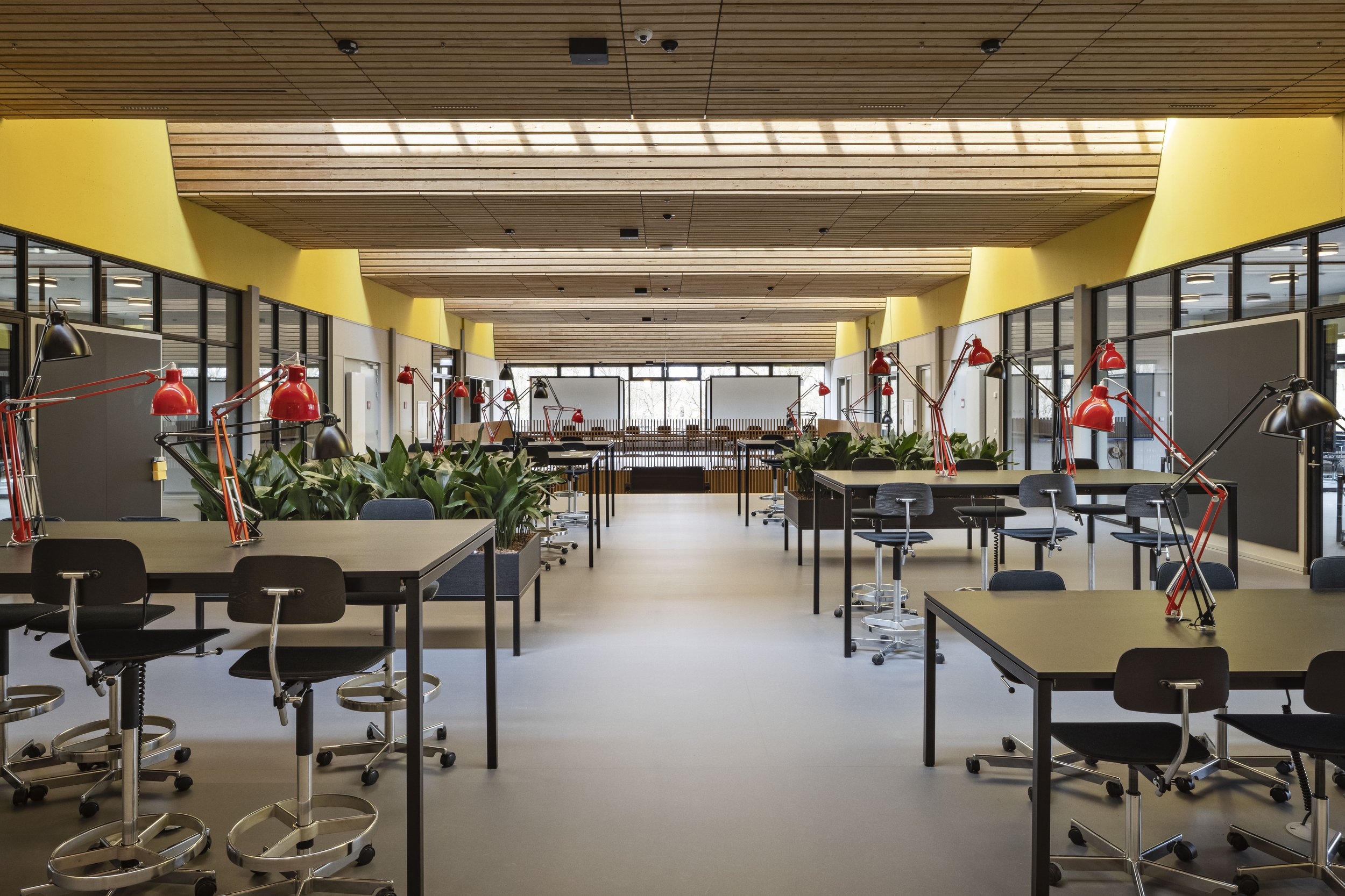 Et væsentligt aspekt af transformationen har været forbedringen af dagslysforholdene. For at åbne den tidligere noget mørke bygning op er vinduespartierne blevet udvidet, og der er tilføjet ovenlysvinduer flere steder. Opholdsarealerne er blevet flyttet til facadens mange vinduespartier, hvilket skaber et mere livligt og forbundet miljø, hvor de studerende og ansatte kan orientere sig på tværs af lokaler og etager samt være i kontakt med landskabet udenfor.