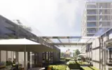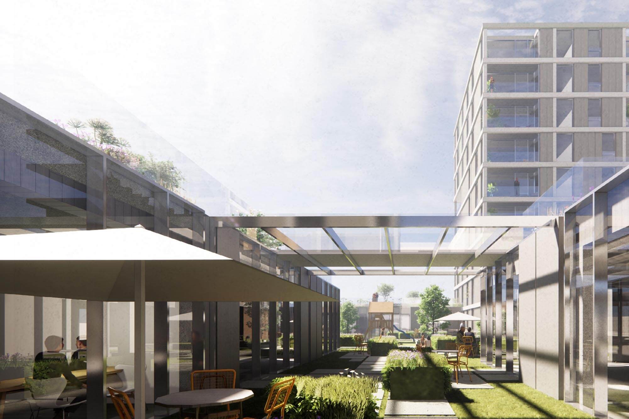 Målet er en grøn oase, hvor bygningen naturligt indgår og glider sammen med kvarteret på en måde, hvor den gamle posthusgrunds historie både bevares og videreudvikles.