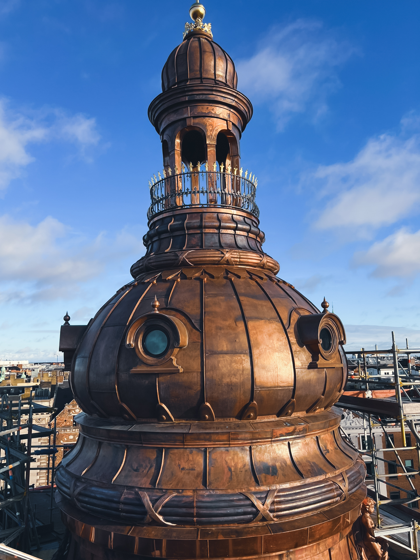 Husets facader og tårn er samtidigt blevet nænsomt restaureret - og særligt bygningens karakteristiske kobbertårn har fået ekstra opmærksomhed.